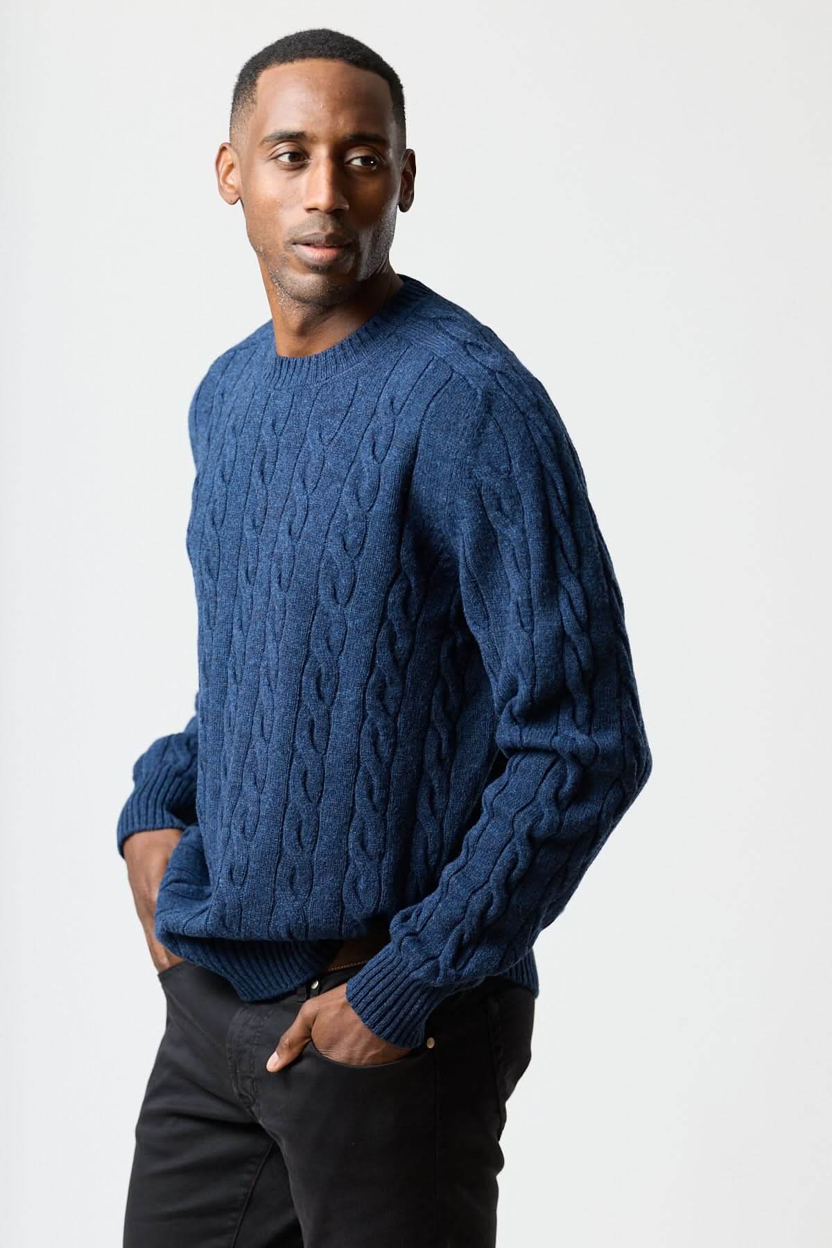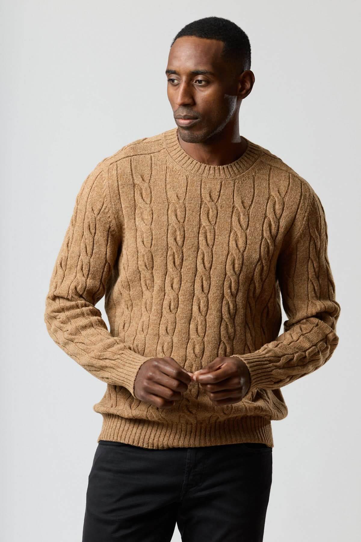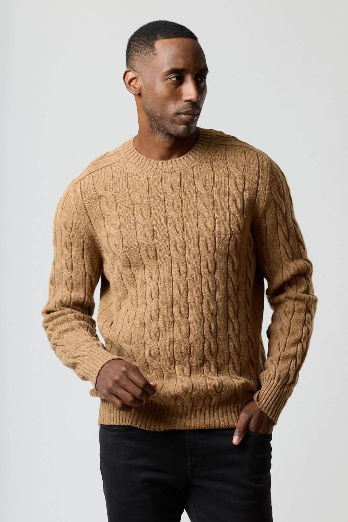 Description : Chandail en maille torsadée avec volume maîtrisé et tombé souple pour un confort quotidien. La texture câblée apporte du relief tout en restant facile à porter du bureau au week-end. Conseil style : glissez-le sur une chemise blanche et un pantalon sombre pour une allure nette et masculine.