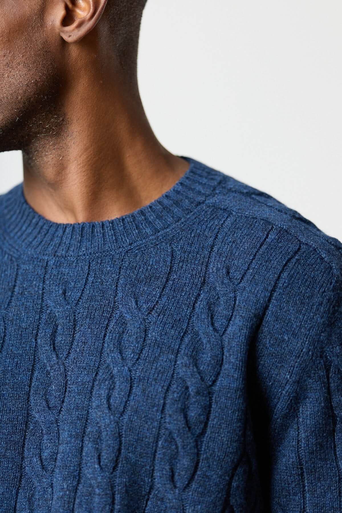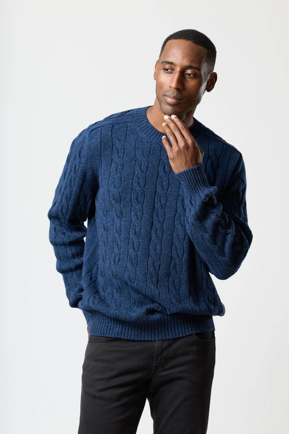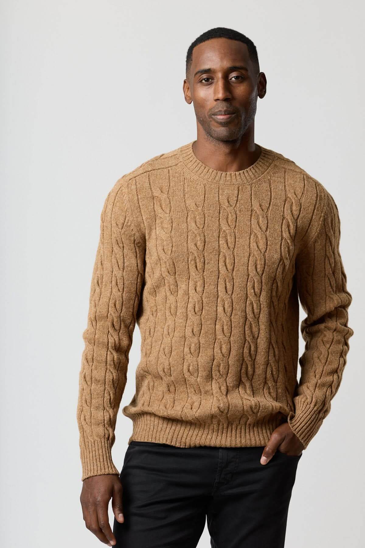 Description : Chandail en maille torsadée avec volume maîtrisé et tombé souple pour un confort quotidien. La texture câblée apporte du relief tout en restant facile à porter du bureau au week-end. Conseil style : glissez-le sur une chemise blanche et un pantalon sombre pour une allure nette et masculine.
