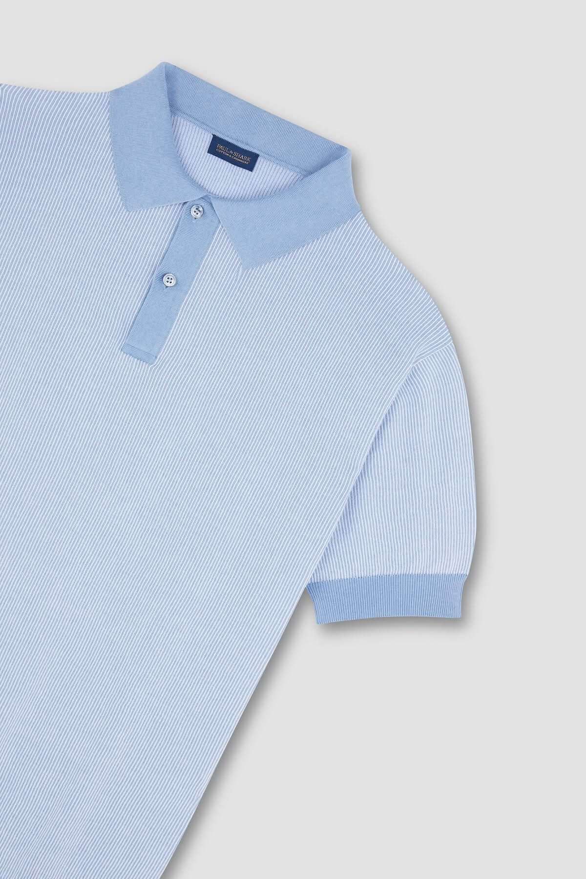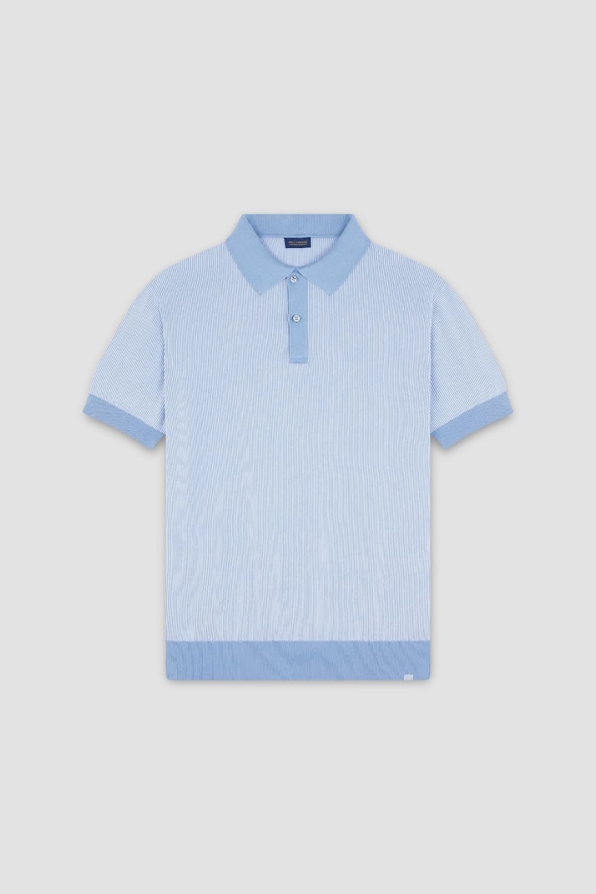 Description: Refined polo shirt in lightweight knit, perfect for an elegant, casual look. Its textured fabric with fine stripes adds a subtle touch of sophistication. Pair it with linen shorts or chino pants for an impeccable summer look.