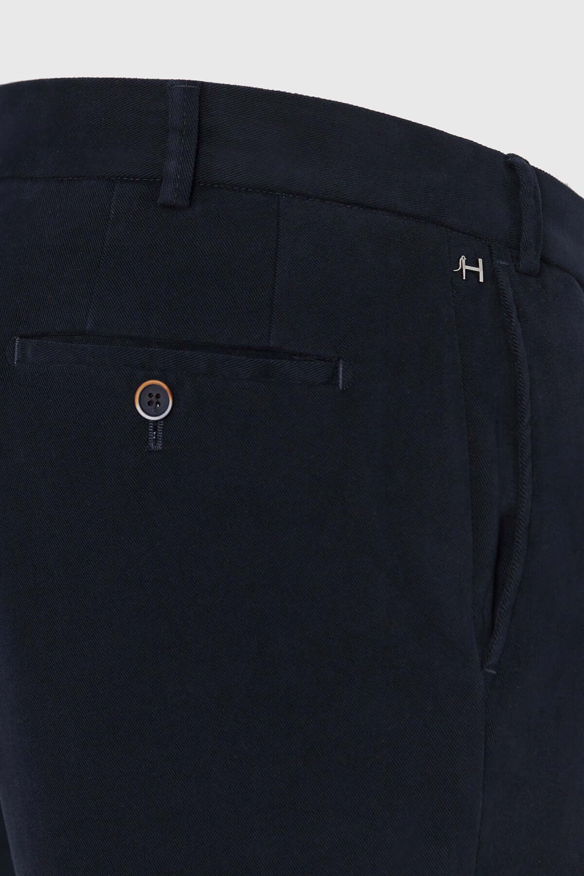 Pantalon Chino Trento bleu marine en sergé coton doux, coupe ajustée, ceinture élastiquée arrière, élégance décontractée par HILTL.