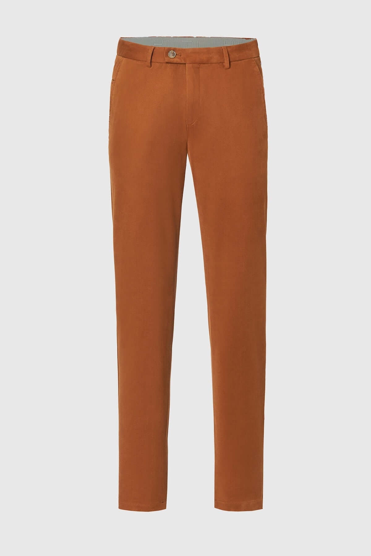 Pantalon Chino Trento en sergé de coton doux couleur terre cuite avec coupe ajustée et ceinture élastiquée à l'arrière, élégance décontractée.