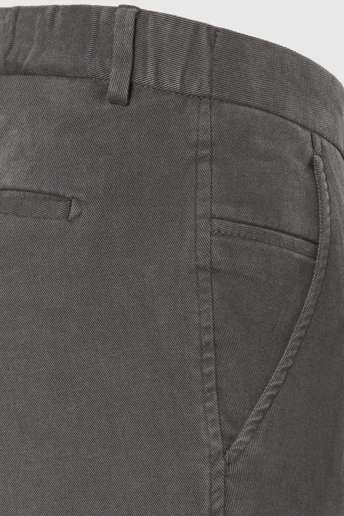 Pantalon Chino Trento en sergé de coton gris élégant avec coupe ajustée et ceinture élastiquée pour un confort optimal.