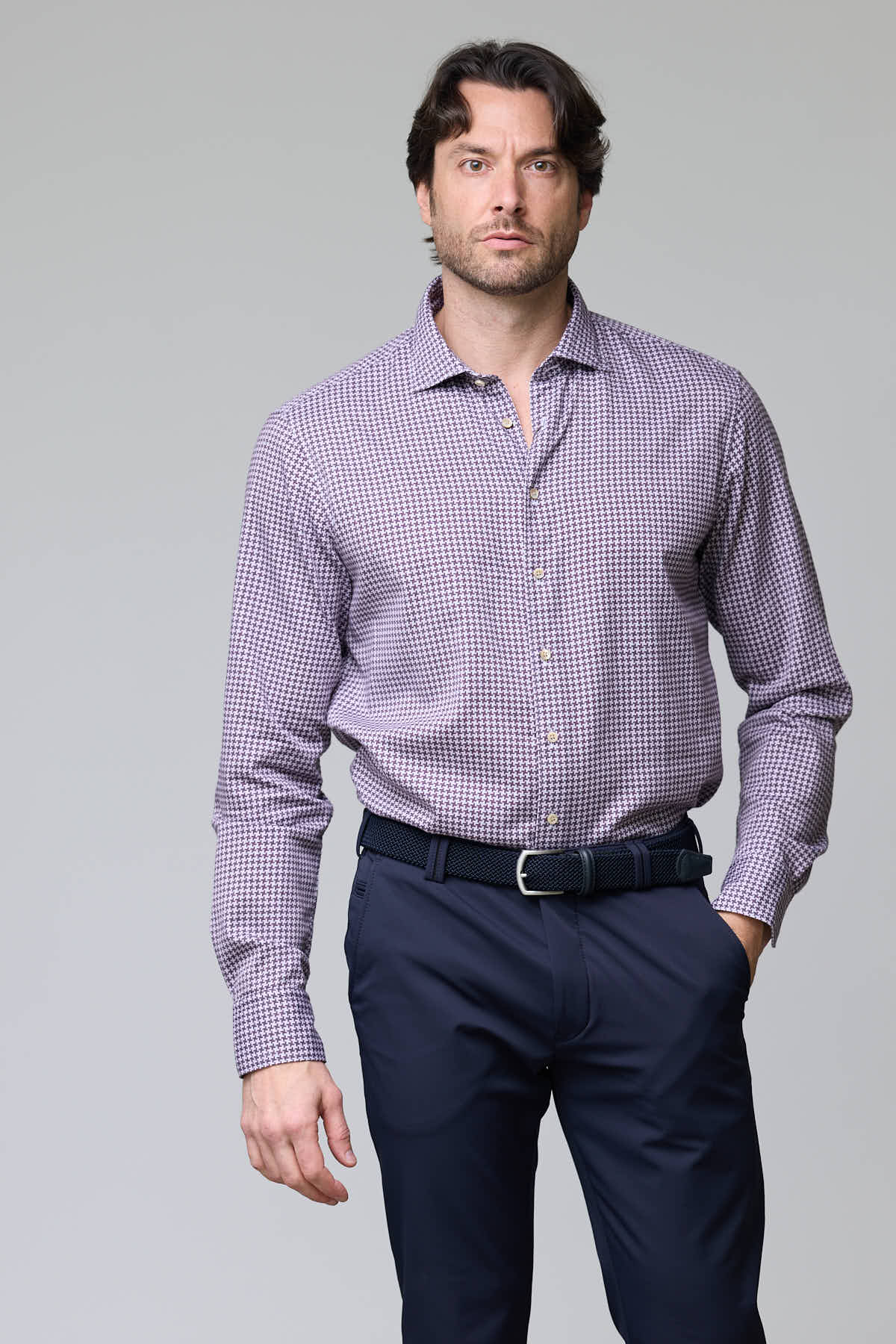 Description : Chemise à manches longues au motif géométrique raffiné, idéale pour apporter une touche d’originalité à vos tenues professionnelles. Sa coupe ajustée et son tissu souple offrent un confort optimal et une allure soignée. À porter seule ou sous un veston pour un look moderne et distingué.